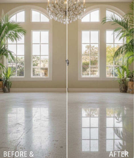 Our floors were a mess from previous tile and carpets over the terrazzo. Al and his team cleaned and restored the floors and they look like new. There were some larger cracks and sections that they had to color matched to the original floors. Very responsive and courteous employees. They do not leave a mess and clean up daily.